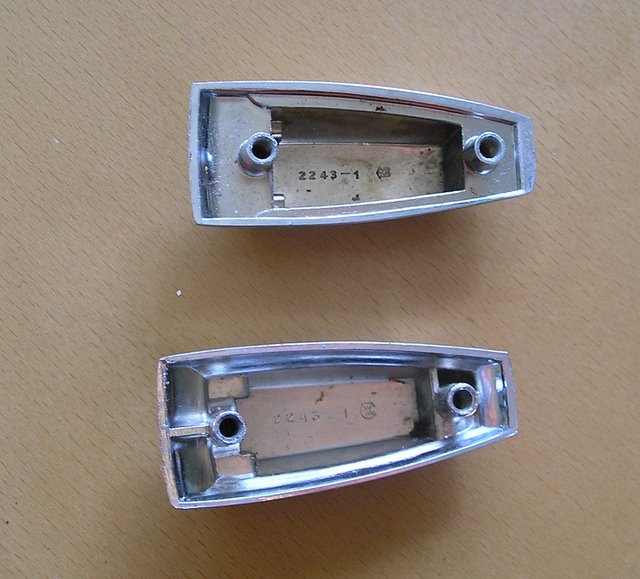 Each lug is stamped inside with 2243-1 but some have a symbol of 2 W's in an incomplete circle and the others have a symbol of a house with something inside of that. The spacings for the screws are the same.