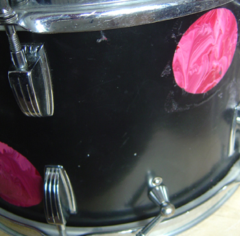 Just do some easy rubbing to dissolve the paint and then wipe it of with a towel or something. Do not take too much water cause it can easily drain around the drum, mask the holes and edges before you feel in control of how it works.