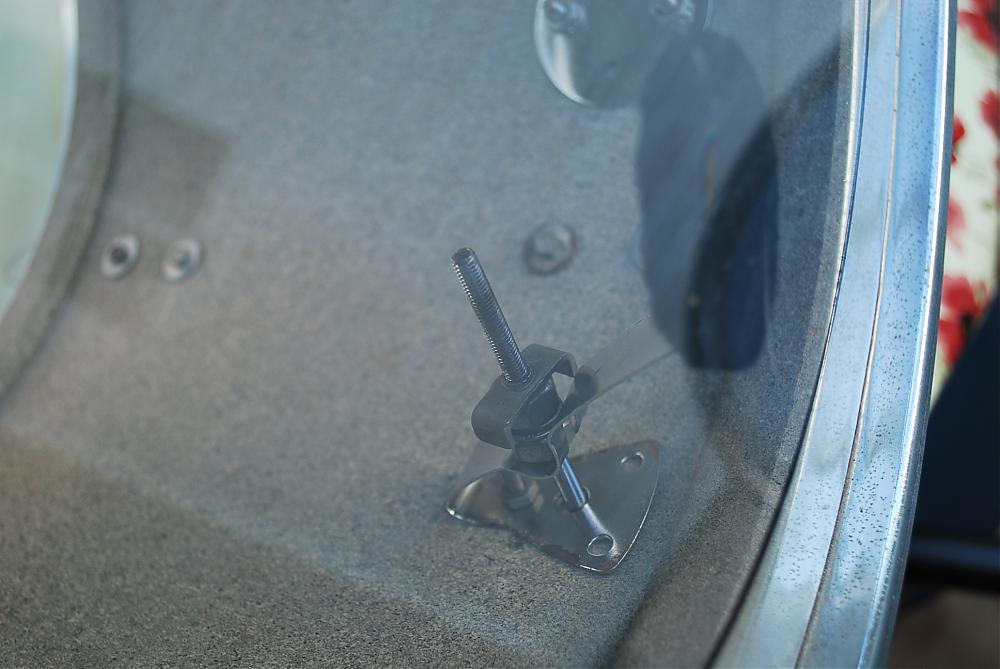 12": no serial number, B/O badge in the middle (Tama"flying T badge"?), clear interior, no re-rings, clip mount (converted concert tom?).