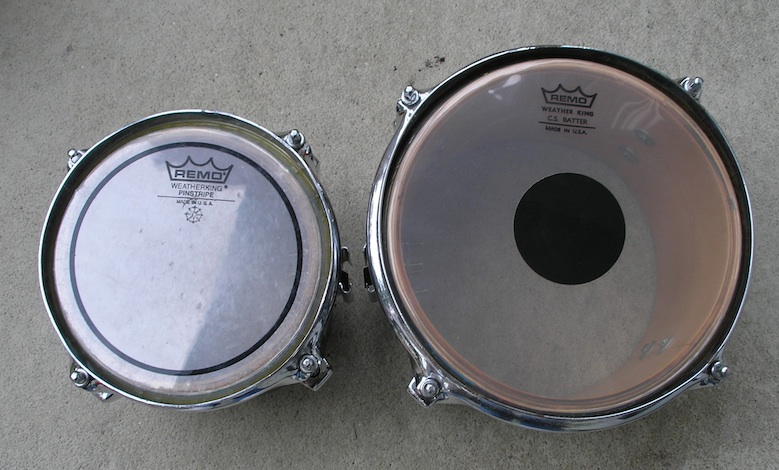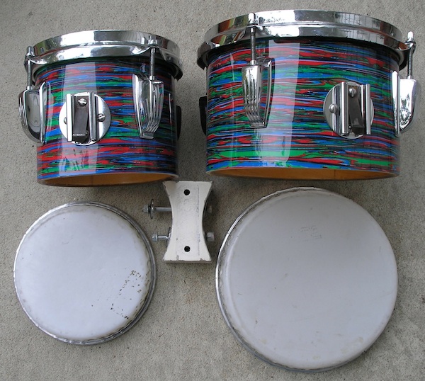 Bottoms are out of round; batter sides are good. Currently have concert tom clips mounted. Will include bongo spacer block and bongo heads. Hoops are straight-edge-bongo style.