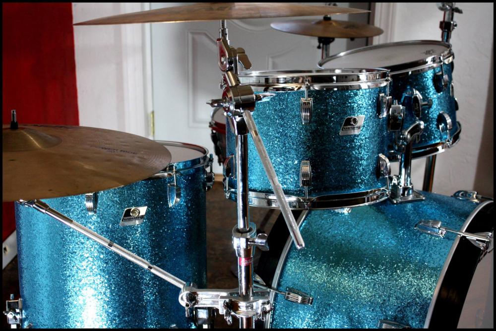 The shells are really nice though - thin 4-ply with the brown "Lud-cote" interiors. I sanded a spot and the outer ply appears to be maple. They sounded pretty good even with the beaten down ebony pinstripes they had on them.