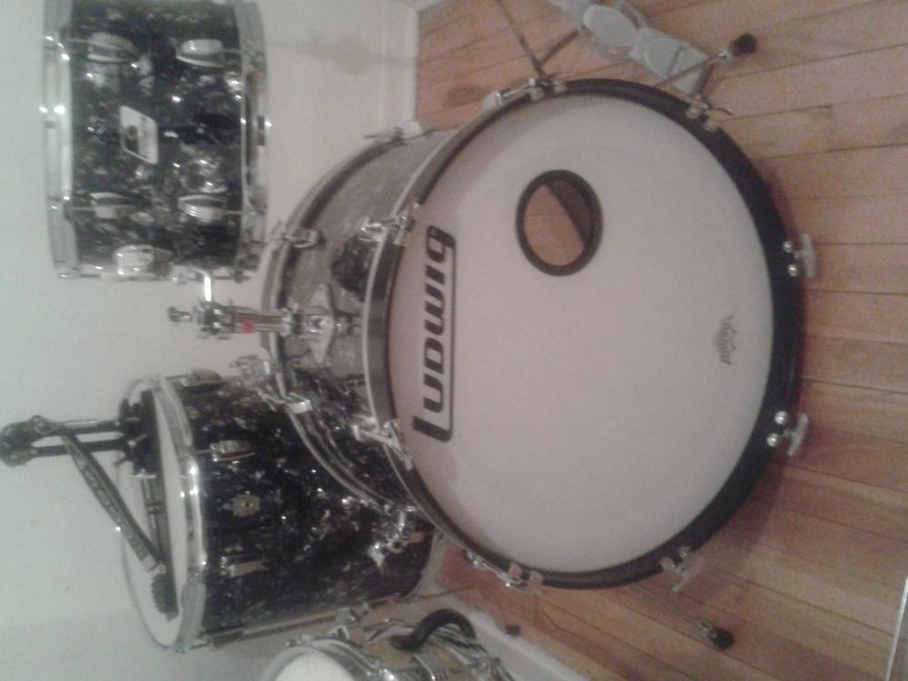 Nice kit you have there.. I have 2 thirds of the same drums and they sound great. When i got them they were wrapped in white cortex that had turned cream yellow over the years, so that had to go. When i sanded the shell i used 220 grit, sanding very lightly towards the direction of the grain. When you see the bare shells, you will notice they are "patched" with an extra maple veneer piece to hide the imperfections that the Rockers/II were known for having. When i finished sanding the shell, I had to continue only on the patch itself, because it protrudes slightly than the rest of the ply, as it would have looked uneven with the rest of the shell, and it doesn't make for a nice paint or stain job. I'd recommend wrapping them after sanding. Here's a pic of my kit, with an extra orphaned Classic Maple tom from the early 80's, either the last of the Chicago, or first of the Monroe badge, i can't be too sure. Funny thing is, i'm actually selling them and have a potential buyer who's coming to check them out today ! I'm downsizing and can't take it with me to my new condo. It was either that kit, or my Yamaha Tour (8000) series in natural finish. I went with the kit which suits my current musical situation. As much as i hate to admit it, the Yamaha blows my Ludwig out of the water, but i somehow think i may end up having buyer's remorse.crying2-07. The wrap i used was from a local company that wrapped exclusively for a few of Ringo Starr's Ludwig kits. Mine has the same wrap as his from his 2011 studio kit..