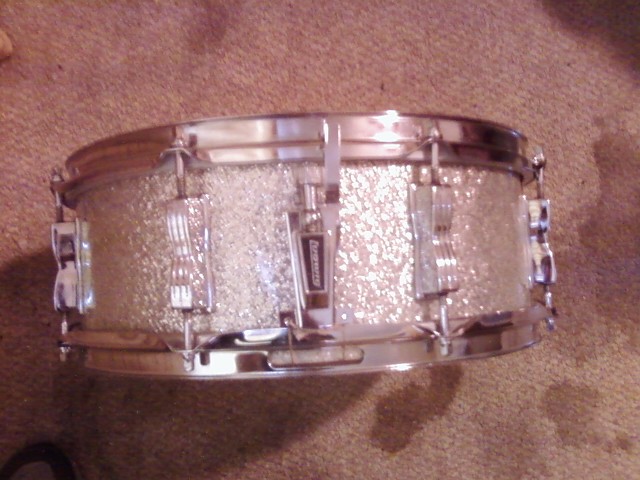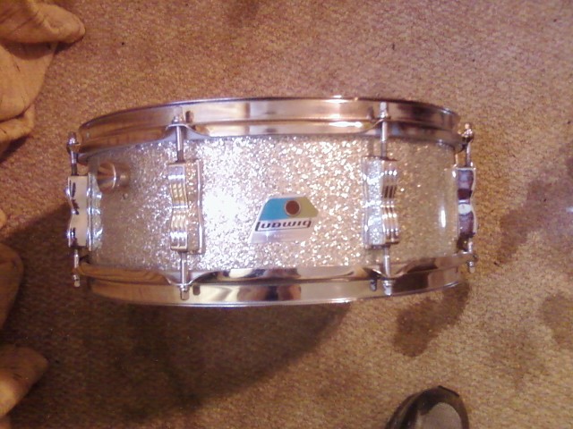 Johnny - a lot of early B/O badge drums (mostly the late 60's supra and acro shells) had the vent hole high on the shell because of the center bead. The top part of the then new B/O badges were being hidden under the top hoop. Ludwig's 'cheapo' solution was to cut down a bunch of badges to use on those shells. A lot of those 'cut badges' turn up on very early 70's drums. When the workers badged-up a drum, they just reached into the badge bin and used whatever they came up with. There was no real rhyme or reason to it. That's why out of sequence number series in a lot of the badges almost has no real meaning. Apparently, your drum was made while some of these cut badges still occupied the badge bin and someone slapped it on to a drum with a well centralized vent hole. The cut top really stands out.