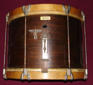 Well, it's a single-tension mahogany-ply shell Ludwig parade drum from (guessing) the 1940's. If you look inside the shell (oftentimes, you can see in through the vent hole) there will be some stamped numbers. If you find them, then relay them here and we can narrow the date down.