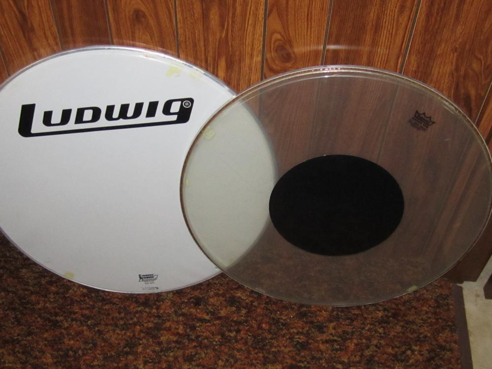 2 heads, one Luddy white with 70s era logo and small tear, one Remo clear with black dot. $15 each + shipping