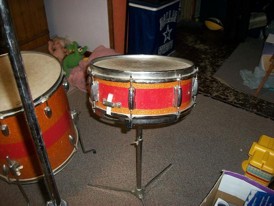 Here is the bad news. Extra holes in snare drum. Not the correct throw off I assume (duh). This seller does not have a price, he is excepting offers. There are two cymbals and stands with the kit, I need to see what they are before making an offer.