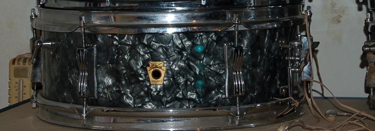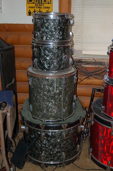 These are my Black Diamond Pearl babies. They've been on the road with me longer than any of the others. Though I've had the '76 kit much longer. She came to me for $695, WITH an Istanbul K. :) Not to mention the snare that was with it was a '62 Acrolite prototype. (pics in snare section shortly)