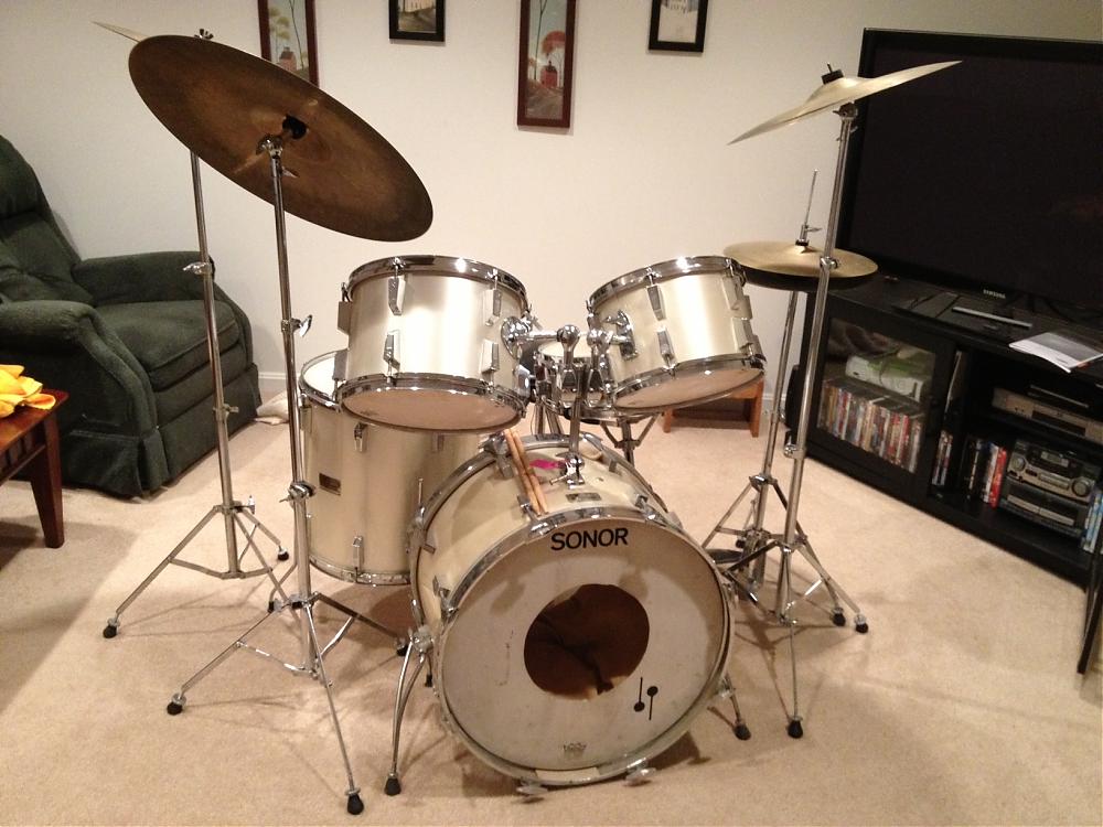 Without the smaller tom, you have a complete 4/pc six ply Champion kit, I think, because I can`t see the edges or badge on the FT. The smaller tom is either a Super Champion or Phonic because I can`t see the badge. The eight lug BD is Champion too, the Super Champion would have ten.