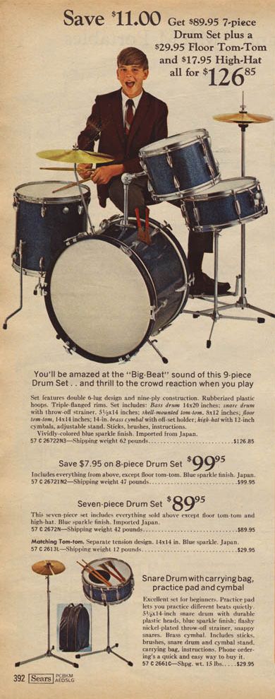 That kit looks like it could have been sold by Montgomery Ward or Sears back in the day. There would have been a picture with a kid sitting sideways on a throne, the snare drum way out of position and the cymbals and hardware in unreachable locations too. Those were the days.