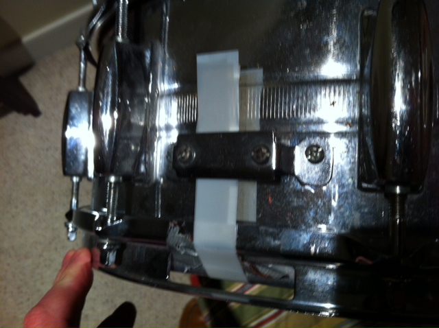 The screws look like they can adjust the butt side, maybe a revision from having a knob as I bet the knob loosened up while playing with the snares off so they made the butt with simple slotted screws that could be tightened down...