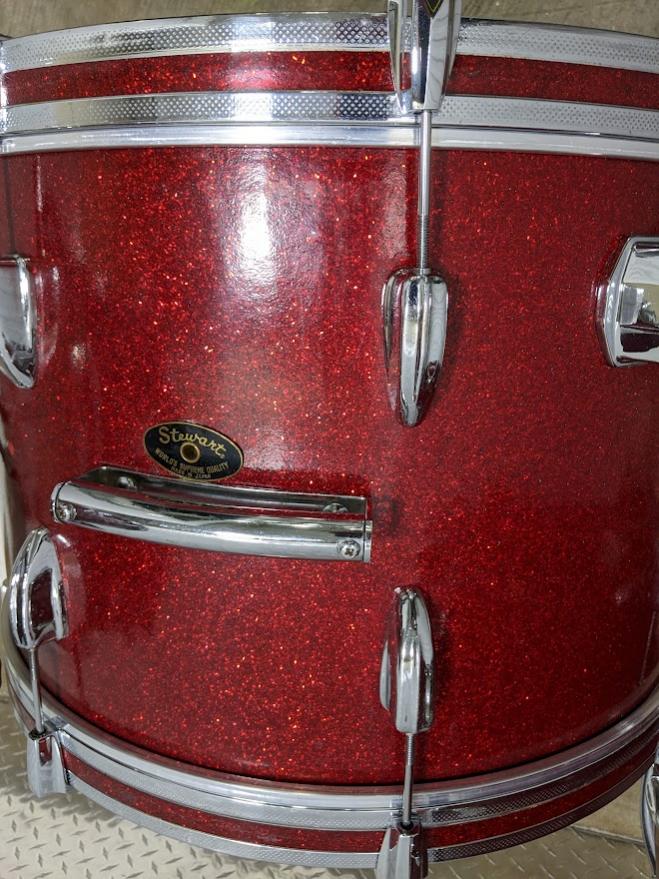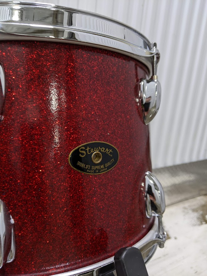 I'll let the pictures tell the story. These are the thicker 9-ply shells with the gray painted interiors. Snare has natural interiors with re-rings. Snare is unbranded, every other drum is Stewart branded.