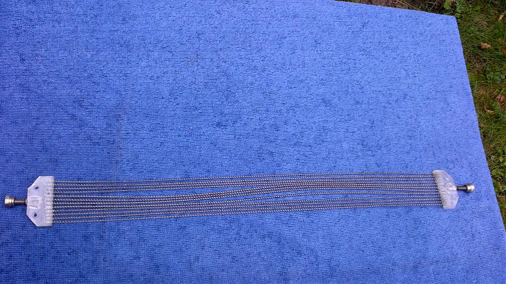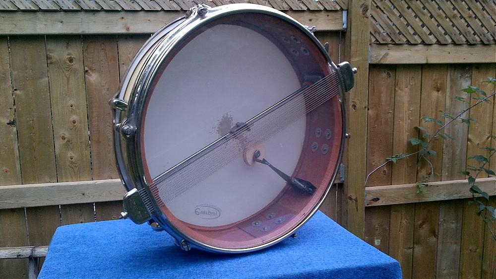 For philw: These original wires are made by setting the studs into plastic ends. The ones, I gave you instructions to make, would need to have metal ends with soldered in wires. You could also acquire a set of older Ludwig wires, that have the plastic ends and set the studs into them by warming the stud with a soldering iron. Someone on this forum will know which, Ludwig wires,I am talking about. You would need a set made for a 16" drum.