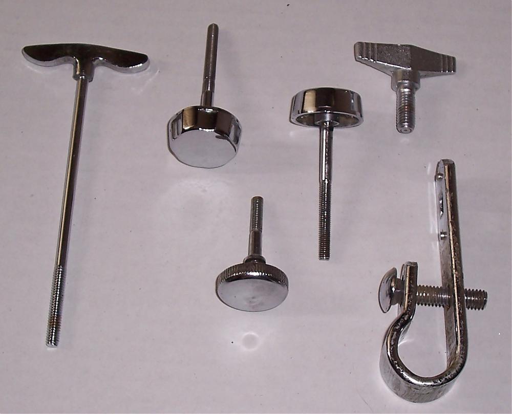 I'm trying to clean out some of my drum "excess" and ran across some miscellaneous parts, which I believe to be MIJs. If anyone would like them I'd be willing to give them to you for free as long as you'd be willing to pay $10 for the shipping costs. I believe that I've also got the rods that go with the 8 lugs seen in the first two pics. Some parts, as you can see, are missing some mounting hardware. They're being given away "as is." Please note that the lugs shown in the first 2 pics are the identical lugs, simply shown from different angles. Thanks for looking!