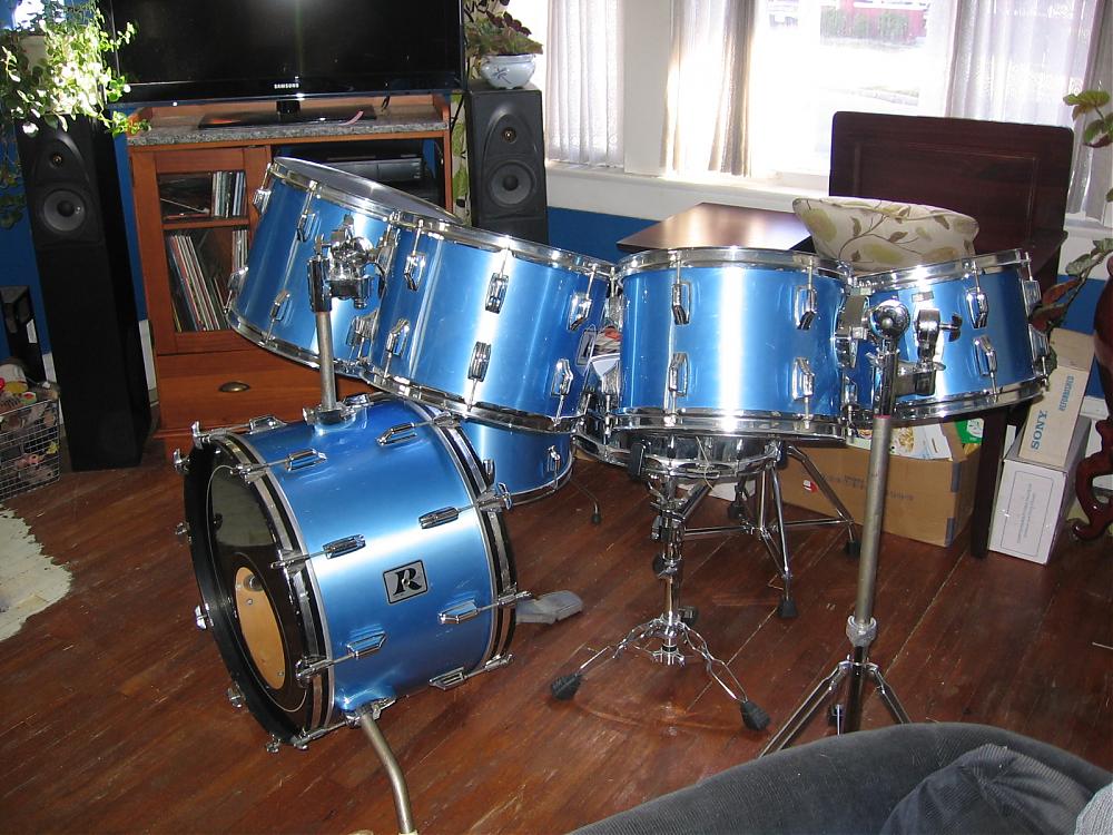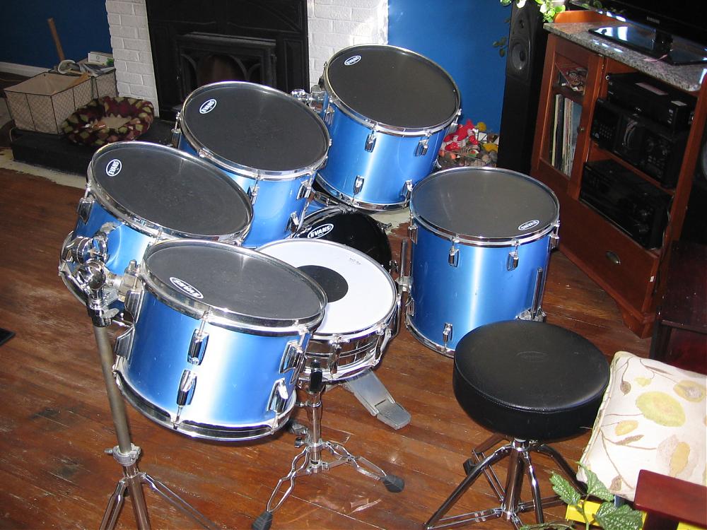 just picked these up on cl. traded some cymbals i had no intentions of using for them. guy kept the snare, which looked like an xp10 to me. no hihat stand but came with the kick pedal. i think this is the "blues maker" set up. 12 13 14 15 mounted toms 16 floor tom 14x22 kick drum. finish is pretty good only see one small crack on the floor tom, around a lug. clear interiors. original hoops/tension rods.