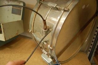 Hmmm, a Beverly, then someone must have replaced the original lugs with Imperials at some point. The cord looks like it was intended for an internal light bulb or heating element for calf heads. That dates the drum to before the 50's.