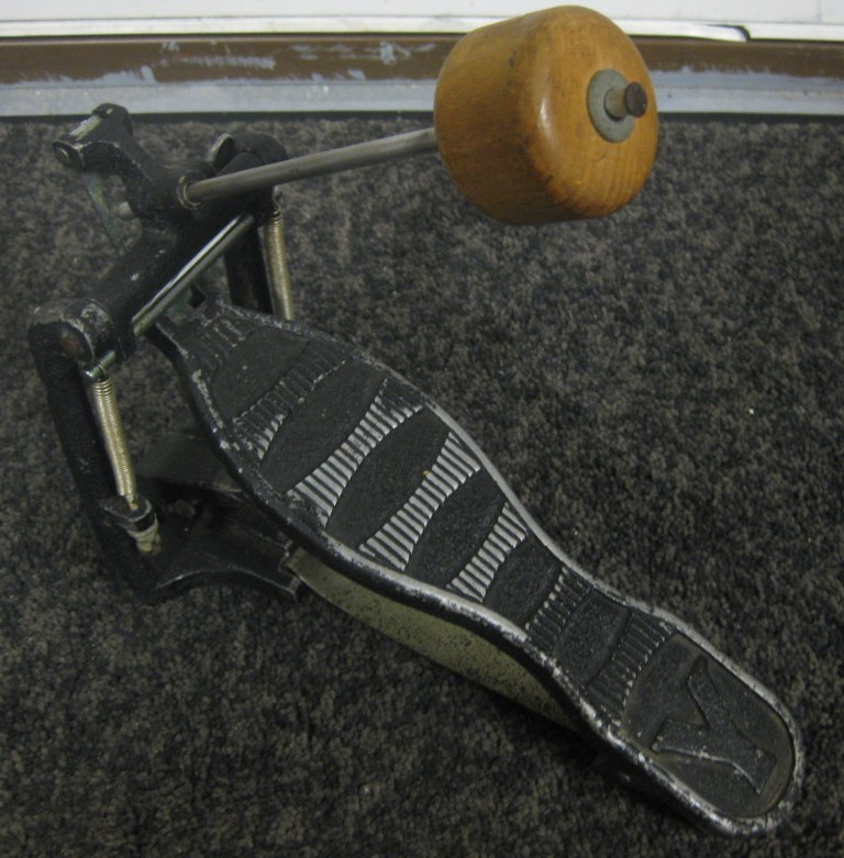 I had one of these pedals years ago. It's one to which I made reference in an earlier thread - a vintage Asian attempt to knock-off (at least in overall appearance) the 1960's era Premier Model 250 bass drum pedal from Great Britain. I don't believe it is an early Yamaha product, although it's possible. Whoever manufactured it should be ashamed. It is a poorly conceived waste of resources. The castings are of the lowest quality imaginable - more like aerated sandstone than metal, and will break in half, undoubtedly accounting for why so few remain on the planet!