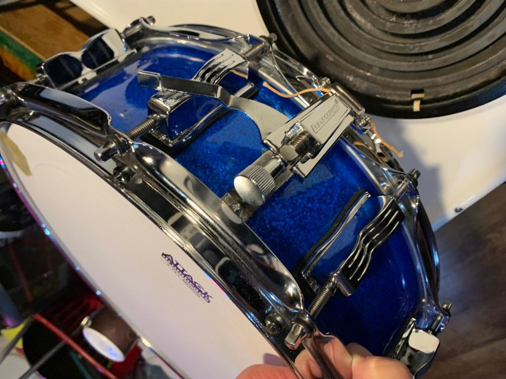 I got this Blue and Olive 10 lug snare from my buddy who is selling a few things due to age and failing memory. It is stunning to see in person. All he said was "It's a blue and olive, but it's rare and was never used" That's all he knew.
