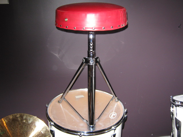 Your stool looks like a 70s by the seat covering, I had a 75 Kenny Clare Resonator kit, the 60s were the same tripod set up but had a tractor style seat pad.