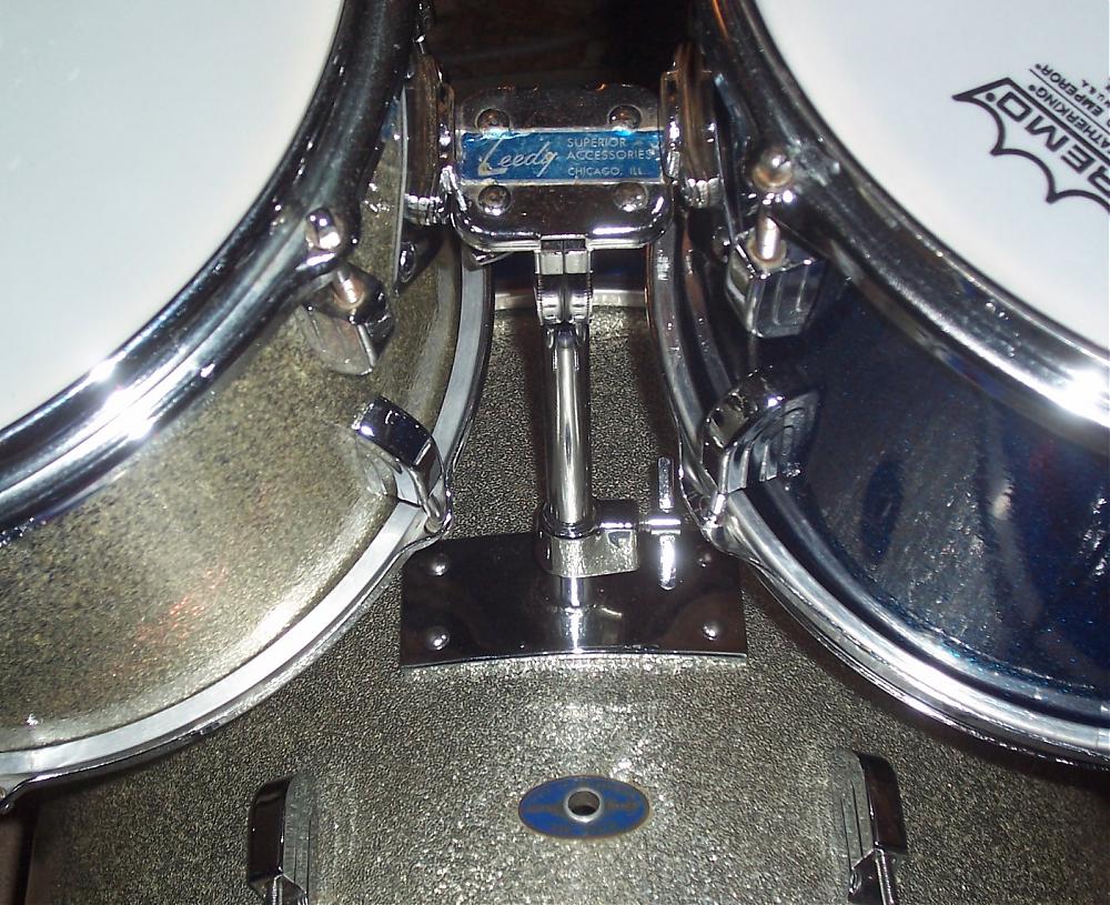 Both toms have the clip-on diamond plates and the kit came with its original Leedy double tom post and bass mount.