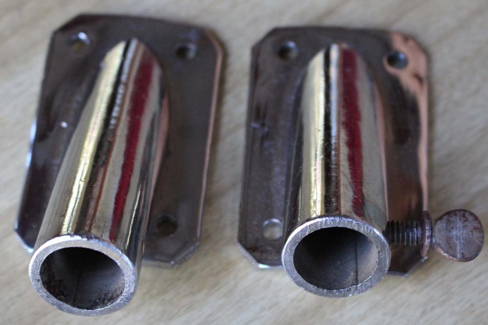 I need to know if some one here recognizes these bass drum spur brackets (they look like that but the curve on the backing plate might indicate something else), A unknown supersensitive mechanism and these weird tube lugs that got only one unthreaded extension that goes in to the mounting hole...Any ideas?
