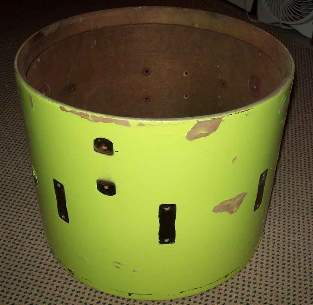 But if not, I'm still curious about what was originally on this drum? I guess it had to have been wrapped in something that came off cleanly, and then someone did a pretty professional job (except for the badge) painting it.