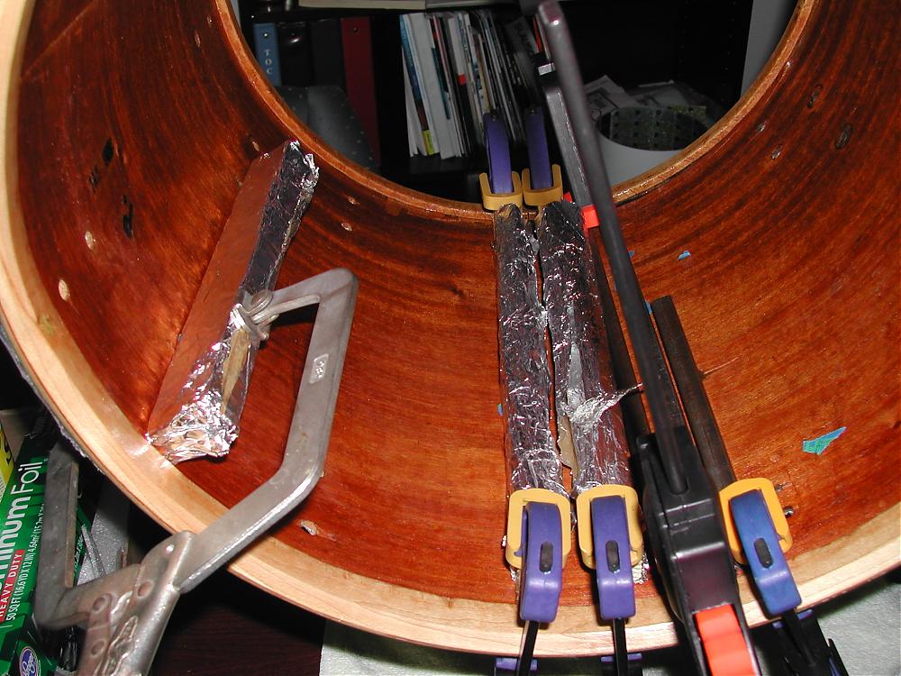 For your delamiation issue, you can inject some wood glue under the separated plys and clamp it with some wood clamps and some 1x1 square dowels like I did on this one. I covered the dowels with foil so that they would not glue themselves to the shell. Afterwards I sanded the inside of the shell & the excess glue that I was not able to wipe-off before it dried, then sprayed a few of coats of clear shellack.