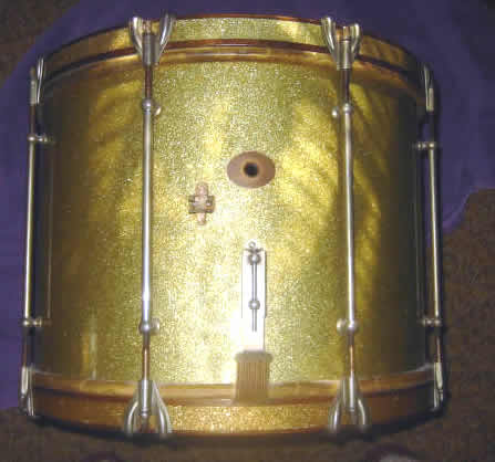 I will add some pictures if it is not too hard. 16 X 12 roughly. Oval badge says only Ludwig & Ludwig Chicago. Yellowish/Gold Sparkle finish. Wood Hoops! Inset sparkle on hoops. Gut snare. Tension rods say Patent Pend at each end. Please please help me figure this one out. Thanks in advance for your time and knowledge. Your brother in drums, Gary