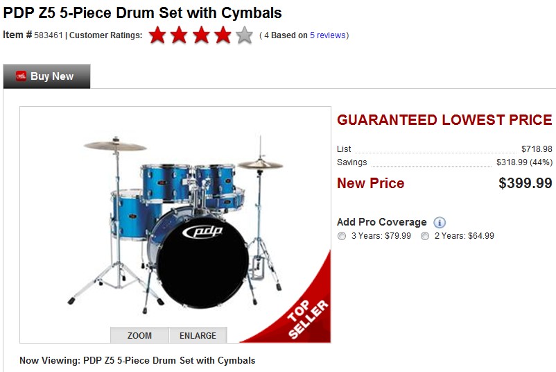 Even though $600 is a lot of money up front, I feel this is a better option than the CB/TJ Percussion kits that flood the used market. These kits retail new for $450 to $500. Plus, the items above should have a better resell value, if the owner/child looses interest.