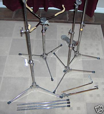 The issue I have with this is that you could easily tell the difference between snare drum stands from Camco, Gretsch, Ludwig, Rogers and Slingerland. That telltale thick circular piece that the T bolt screws into is what tipped me off to this being a Camco stand. Finally, here's a picture of a complete set of Camco hardware from a beautiful 60's kit that sold on eBay quite some time ago.