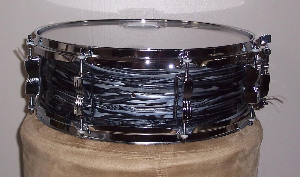It's simply a drum that I had bought from a gentleman playing in a Beatles Tribute Band that he wrapped in Precision Drum's 60s Oyster Black Pearl. The prior owner painted the interior shell white to resemble the actual Ludwig drums from the 60s.