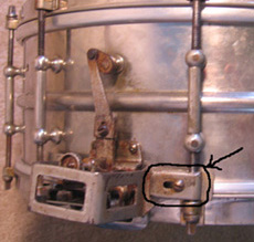 Looking for a pair of '36 Slingerland Radio King early "two hole" version bridges in chrome. Thanks go to Rich K. for the Slingerland Artist parts. Drum is now complete!!
