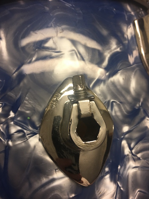 This looks like my first kit many years ago in same sizes, mine was a red sparkle with the same badges and same lugs. Let me see the bass drum mount too. This is a early 70’s kit. The shells are either Luan or mahogany.