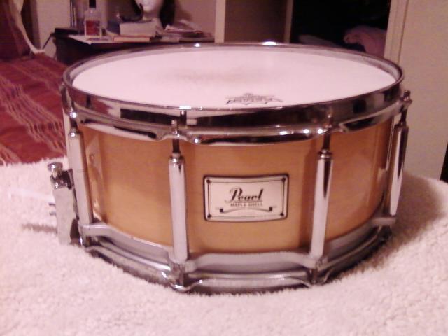 Anyone interested in a trade for this Pearl maple 6.5x14 free floating snare drum? It's a newer model and is in great condition. I'm looking for a Rogers or Ludwig 5.5x14 or 6.5x14 ten lug snare, wood or metal, any year, any finish, thanks.