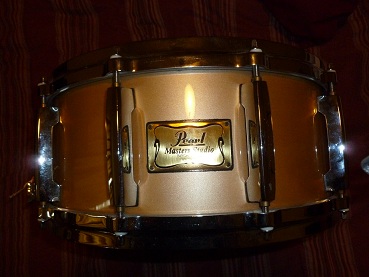 This is a like new 6.5x14 Pearl Masters Studio Birch snare in a platinum mist finish, thanks.