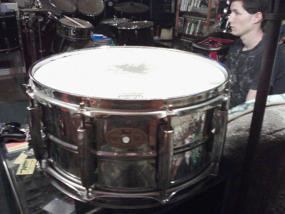 Yesterday I was purchasing the Rogers drums from my friend. He showed me this Pearl snare drum that came with the Rogers drums. He is keeping it for himself. It will clean up like new. I thought it was a cool drums so searched Ebay completed listings. They sold for between 100 and 140. Was just wondering if anyone had any info or comments that I can share with my friend.