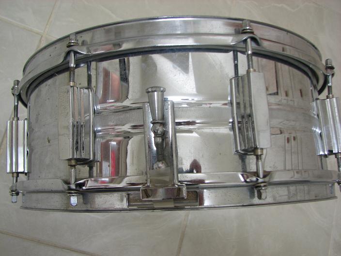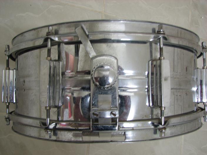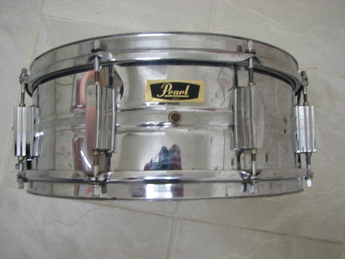 I know its not the President, judging from the flat lugs, but it looks 1972 perhaps? I've had it for around a year. It came with the Boston WMP 4-piece, and I just thought it was another old steel snare, but the area around the weld is unchromed and most certlainly a reddish metallic colour,does this indicate that it is brass (see pic 2)? Perhaps it just solder. It seem many of the old Pearl snares were available in brass.