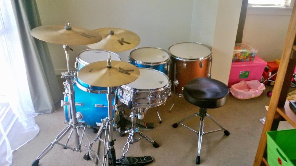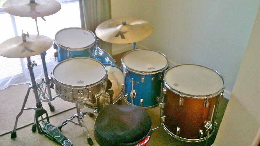 You can clearly see from the pics of the original catalog that it looks to be n original bass drum and not a conversion..Indication of this is the vent hole underneath the badge.. If it were a floor tom conversion, the vent hole wouldn't be underneath the badge, as you can see from the original catalog kit, there is clearly no vent hole underneath the badge on the floor tom..