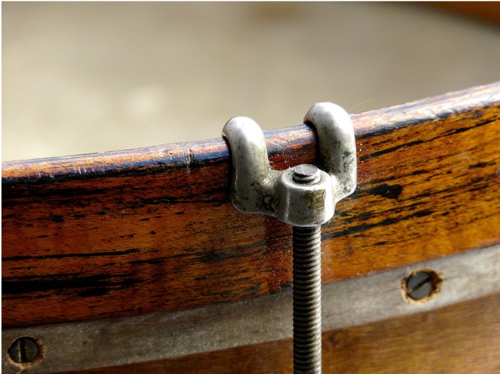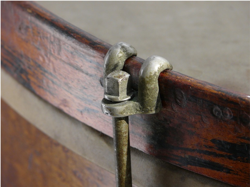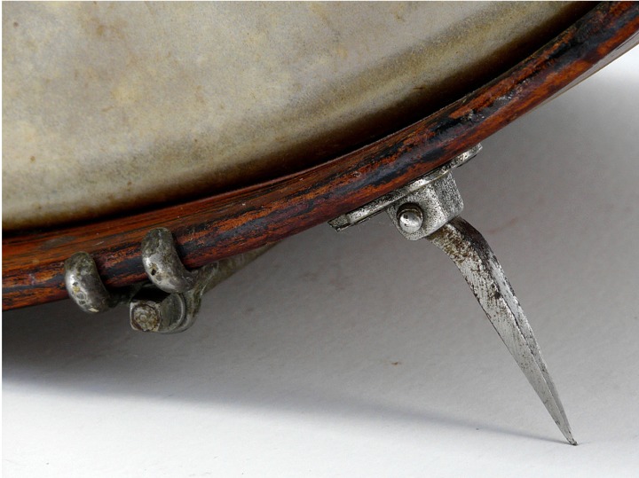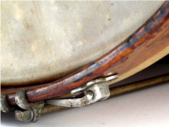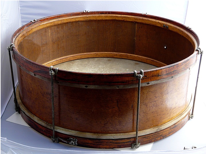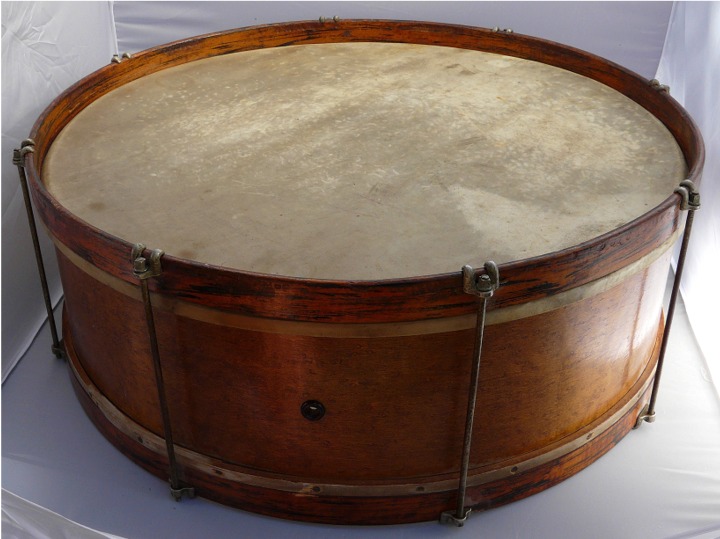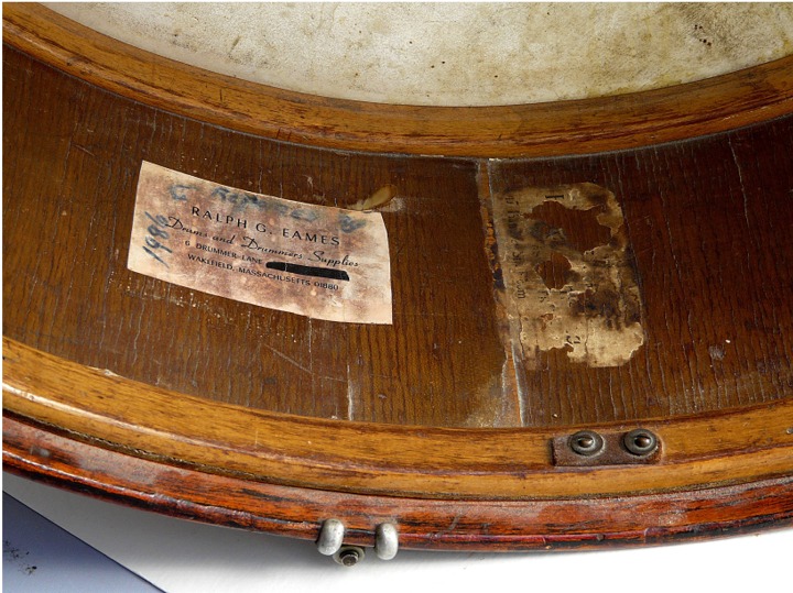 10 x 27 birdseye maple bass drum, possibly by F.E. Dodge around 1890. original calfskin head. Has original tuning key and cool flip out legs. Was apparently repaired/reworked by Ralph Eames in 1986. Anybody have any info about this drum. The seller said it was meant to only have one head and that the player would carry his traps inside...I am not too sure that's true. Looks like it was fully capable of having another head. What do you think?