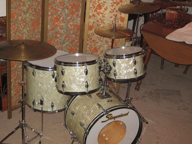I recently bought some Pre-Serial # Keystone Badge, Black Diamond Pearl Luddys. A 22" bass with natural finish on the interior of the shell, and 2 12" toms with white interiors. I already had a snare I bought about a year ago that almost matches perfectly. It has been restored and rewrapped and has a new aftermarket Luddy keystone badge, but it has the original white interior as well, and the correct throw off, butt, lugs, lug screws, and rims. Im sure its genuine vintage ludwig. A friend of mine gave me this 16" luddy floor tom for my birthday. It is white marine pearl under black paint. It is also white interior, with a ball bat muffler w red felt. It is a serial number keystone dating 1964. I plan to rewrap the floor tom. My question is "Would it be unethical to change the badge to a pre-serial# badge? Same question on the restored snare? The ft interior needs to be repainted also. Should I paint the inside of the bass drum shell? What is the best paint to use?
