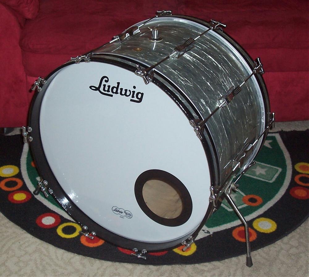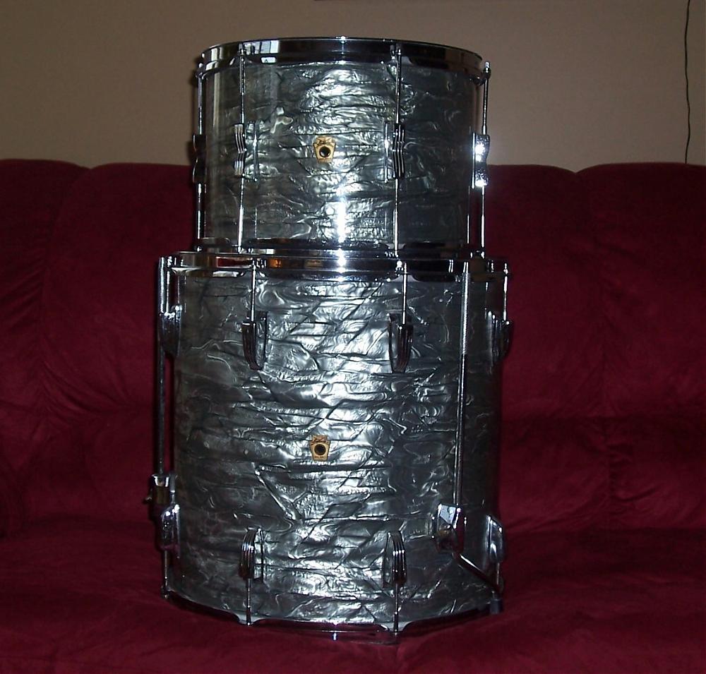 I'm the original (and only) owner of a Ludwig Sky Blue Pearl kit which features a 22 inch bass drum, 13 inch rack tom and 16 floor tom. The bass drum & rack tom are in club date configurations, with pre-serial keystone badges, while the floor tom appears to be a Ludwig Classic with a keystone badge dating it to 1964.