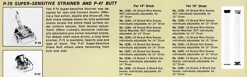 I once collected about a dozen 1960s-1970s SS snares, but only have two at this time. One is a pre-serial number - 1961, I think it is - one of the earliest produced, from the collection of BEC. I also played a 6 1/2" 1976 SS for decades....I studied the various production changes made over the years, but - unfortunately - I'm out of town right now and cannot access those two drums nor the notes I've made...I'll be home on Monday and will be happy to tell you then what details I've accumulated, and I can photograph my early SS....My memory can no longer be trusted, but what I do know, is that the earliest SS snares have a throw-off unlike the common SS's. It pivots in the opposite direction as most Ludwig SS's....The earliest snare wires - thru about the early-to-mid 1960s, had individually-adjustable wires! Yeah, hard to believe. I have no experience with these, as I always used the later SS snares, which are the same as common snare wires, except for the metal ends that engage the throw-off mechanism(s). These are available via Ludwig or Puresound, or on ebay. There are two types - early and late.