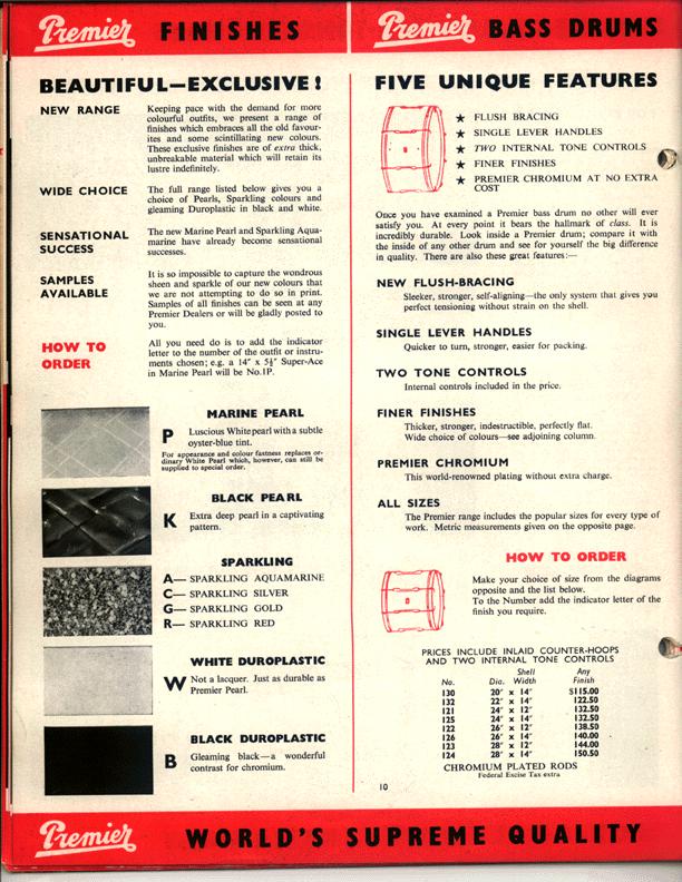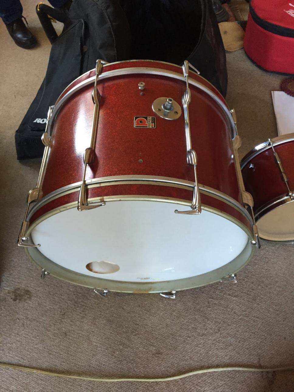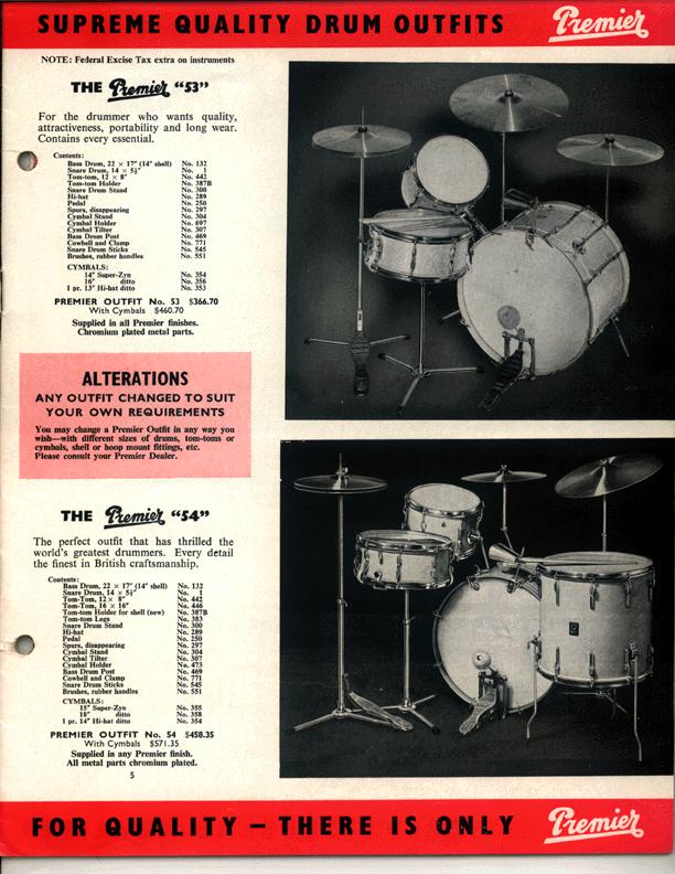 I've just come across this Premier Kit. Its 4 piece. 12;16 Toms. 14 snare & 22 kick in a Sparkle red finish. I suspect it is a 60's 54 Outfit. There are no serial numbers.