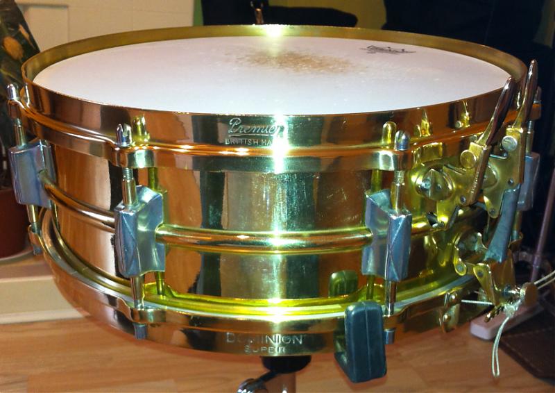 Recently purchased this [COLOR="Red"]Premier Dominion Super[/COLOR] off Ebay, gave it a polish and put modern heads and snare wires on it, it sounds great. I would realy like to know more about these drums if anyone has any info. I know they were 1930's however I cant find a serial stamp to indicate any other date. I was curious to know how much they are worth if anything anyone has an idea (I wouldnt be looking to sell though). Also if there is anyone that would have parts such as snare wires and the snare throwoff levers.