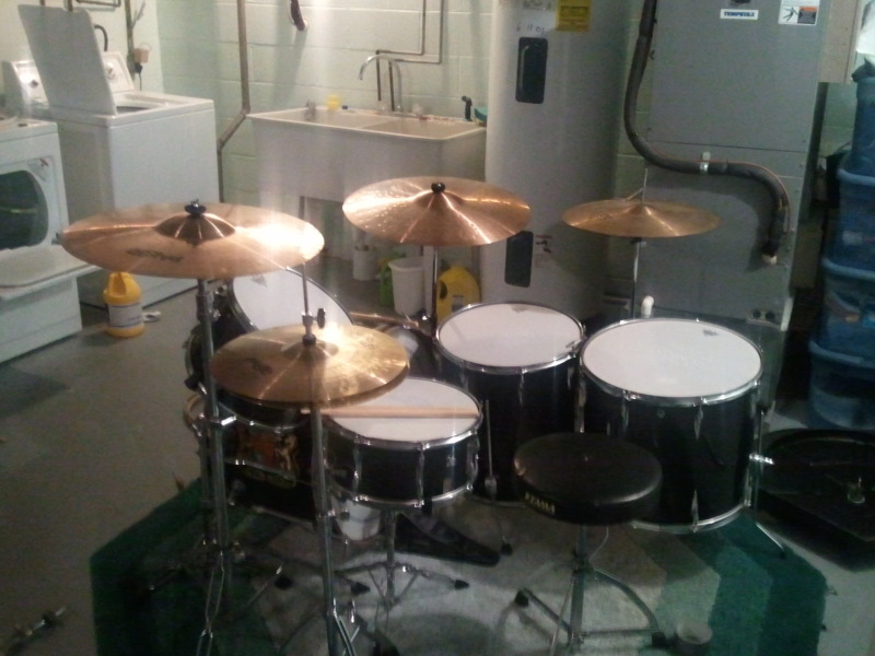 This kit is still a work in progress but will not be being worked on for quite some time. I still need a few little parts for the kit and will be re wrapping it in a few months when I can save enough money. I am thinking of doing some sort of sparkle finish(probably green). I would also like to add a Paiste 20" china or 18" crash(or maybe both)and a Steel snare.