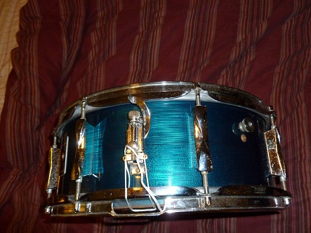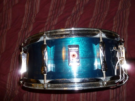 This is a nice 5.5x14 Premier Olympic snare made in England in a blue shimmer finish, not a wrap. I believe it is a 3ply birch shell with beechwood reinforcement hoops. Everything is original except for the heads and snare wires, thanks.