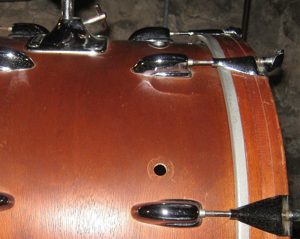 I just picked up this 70s Slingerland (22,18,13) for a little money. On the bass drum there is a single extra hole! Anybody know if this is original or not?