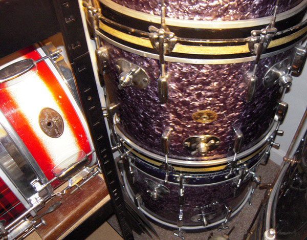 Nutbox, If that's not 2 x 12"s then the 13 looks to be first in line. There is also a knobby mount on the floor tom top for a cymbal arm in that photo of Freddy Bonita. The top hat outfit was 2x12s with the 16flr tom having that top knobby for the cymbal arm. When those Swivo plates came about the people that used the Rogers drums were Swivo happy as well as the ones that made the drums! Eagle badge era and odd scripts, like the bottom purple bass drum, both have 2 mounts on the players side for cymbal arms, snare arms or tom arms. Standard Swivo happy drums! Peace, Gary