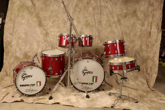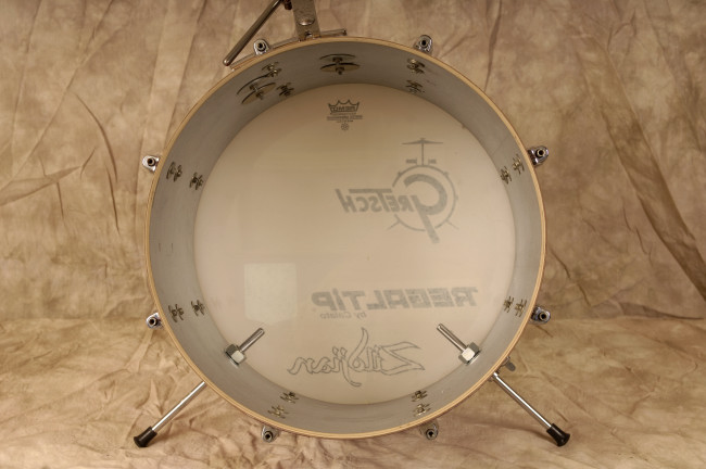 Can anyone help with comments regarding this set? It has the smallest bass drum I've ever seen 11.5x16 (no label inside). Also, the two small toms (5.5x8 model 4448 and 6.5x10 model 4449) have no lugs for bottom heads. Is this unusual? The rest of the set includes an 8x12 side tom (no label inside), 14x20 bass drum (no label inside), 4x14 snare, and I think the floor tom is 14x14 (sorry, I forgot to write down the size).