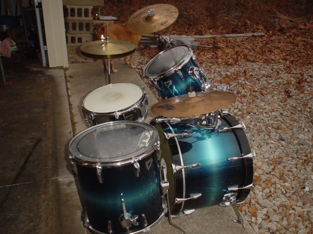 OK, I have this Remo Master Edge kit that is American made. The shells, if I understand it are "engineered" shells. Think Novaply. They are wood but a small particle wood with some kind of glue. Believe it or not they sound very good. Not for the hard core vintage guys. What I think is they would be a good practice kit you could leave in a practice place and not worry too much about it. Or a church kit that gets played by everybody. The sizes are: 16x22, 10x12, 16x16. I have a steel Yamaha 5x14 snare to include if you need a snare. What I'm looking for is a project kit from an American company. Something that needs total restoration, faded badly, mismatched orphans, that kit you were always going to fix up, something along those lines. I know somebody has a pile of drums just sitting around like my examples. Look at the pictures and send me a message with what you have. Thanks