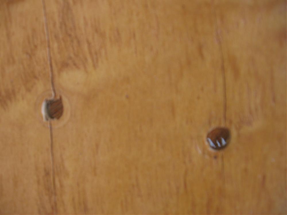 Hello, I just joined this forum to learn about how to properly take care of vintage Gretsch drums. I own a 24" single-tension Broadkaster bassdrum in Blue/silver duco from 1952. It has some splits in the inner ply and I can use some advice on how to repair or take care of the drum to insure no further damage is done by further drying out of the shell. I searched the web and all the information on polishing, oiling inner plys is so conflicting that I decided to ask the people who know: vintage drum collectors. I've read about using tung oil, linseed oil, walnut oil, even olive oil. But I've also read never to use any oil based products as the plys will separate. I've also read about using pledge and other supermarket furniture polishes, but I would prefer a non-toxic substance to take care of my drums. Can/should I use woodfiller or glue in the splits, or just leave them alone? Any advice will be much appreciated. I have added a picture so you can see what I am going on about.